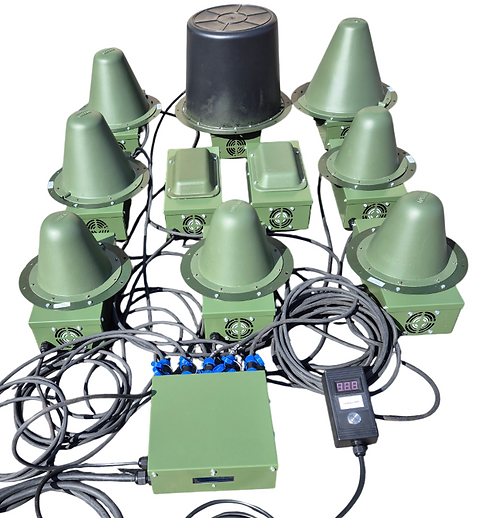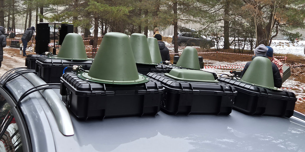- Для приглушення FPV-дронів забезпечується сектор випромінювання із шириною 360 градусів по горизонталі та 180 градусів по вертикалі, що охоплює повний простір без утворення «сліпих зон» у верхній частині.